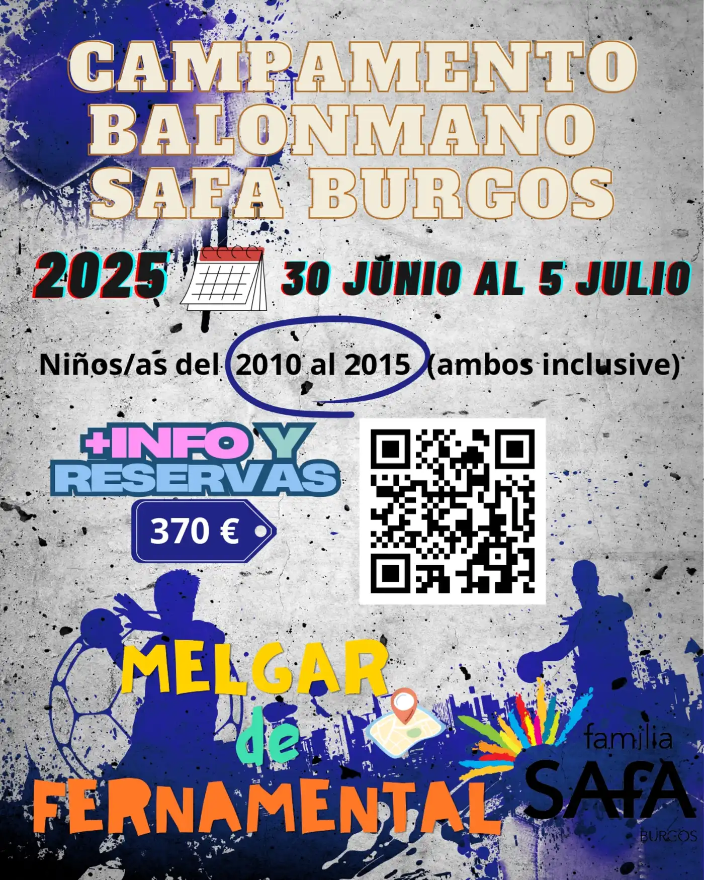 El Club Balonmano Burgos presenta el Campamento de verano Balonmano SAFA Burgos en Melgar de Fernamental que se llevará a cabo del 30 de junio al 5 de julio.