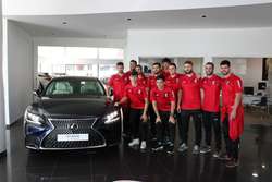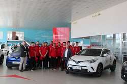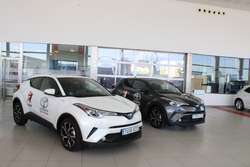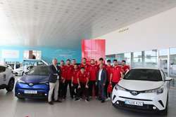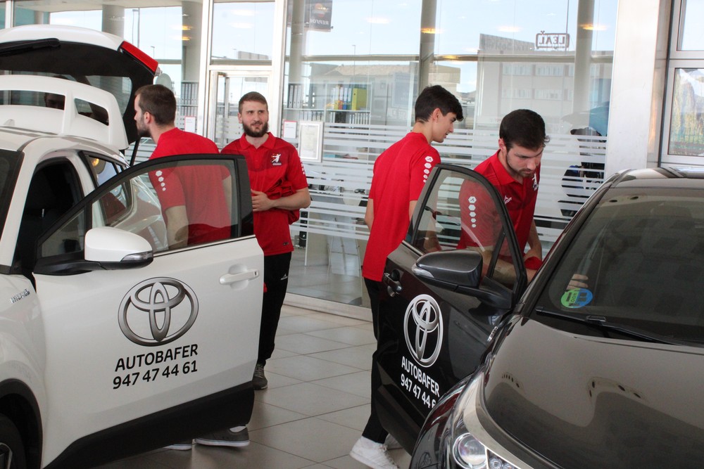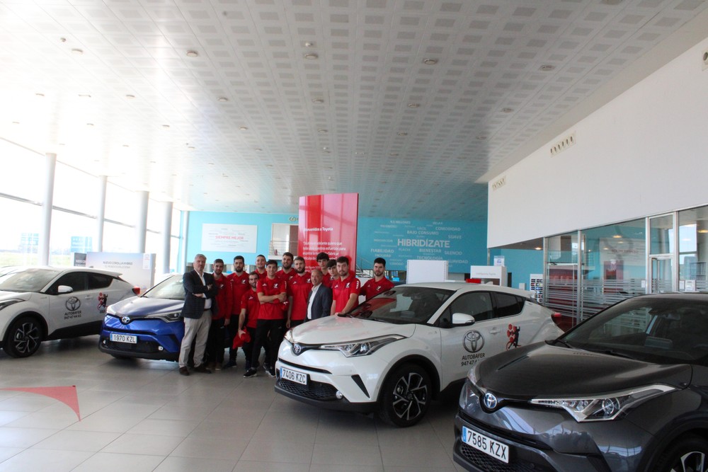 La plantilla del UBU San Pablo Balonmano Burgos visitó este viernes Autbafer, en la carretera Madrid-Irún, km234, para recoger los cuatro Toyota CHR con tecnología híbrida que el concesionario pone a disposición del club para esta temporada como vehícuos oficiales.