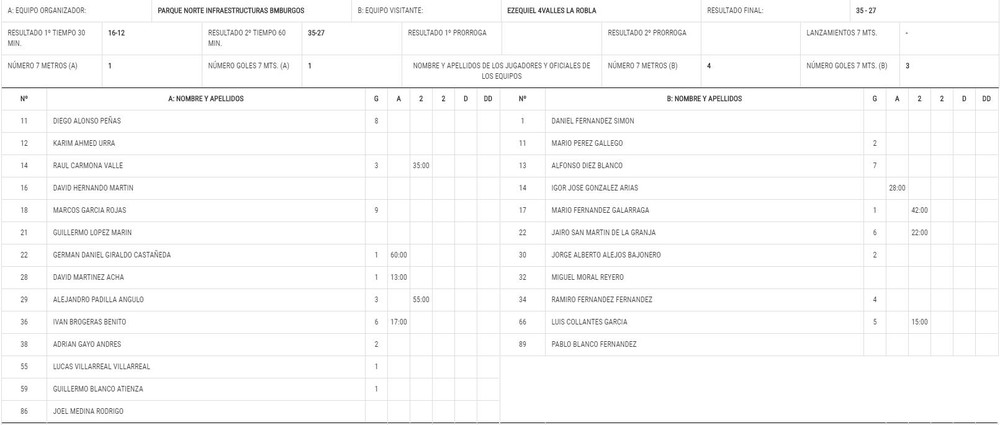 La buena distancia de goles en el marcador permitió la distribución de minutos que no hizo bajar el ritmo del partido ampliandose la diferencia hasta el marcador final de 35-27.
